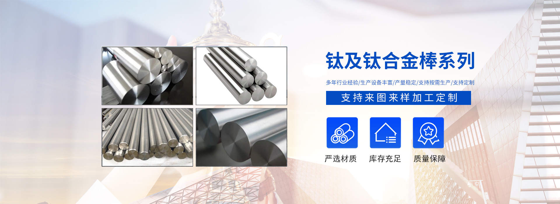 陜西辰軒鑫達金屬材料有限公司位于具有“中國鈦城”之稱的陜西寶雞高新技術開發區,公司依托“中國鈦城”的雄厚的行業資源,強大的有色金屬科研及制造實力,完整的有色金屬工業制造產業鏈,形成了一套完整的生產流程,公司主要從事有色金屬的加工,生產及銷售及工業及民用鈦、鎳、鉬及其他稀貴金屬材料的深加工研究生產及國際、國內貿易,集有色金屬材料銷售、產品設備制造及新產品開發為一體。主要以生產鈦材及其他金屬材料為主,主導產品有:鈦錠、鈦棒、鈦絲、鈦板、鈦法蘭等以及其他有色金屬材料:鋯板、鋯管、鋯棒、鋯鈀、鋯餅、鈮管、鈮棒、鉭板、鉭棒、鉭管等有色金屬。產品廣泛應用于化工、冶金、石油、紡織、醫藥、輕工、環保···